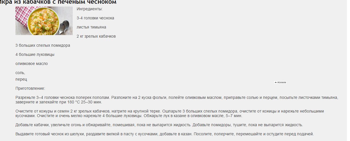 Икра из кабачков с печеным чесноком : Овощные блюда : Кулинария : Subscribe.Ru