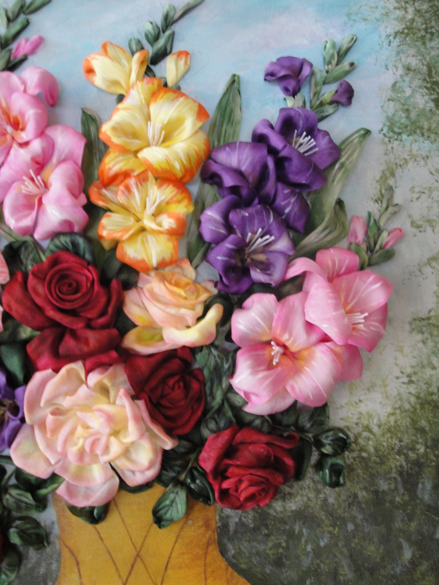 Незаконченный букет... / Вышивка / Вышивка лентами
