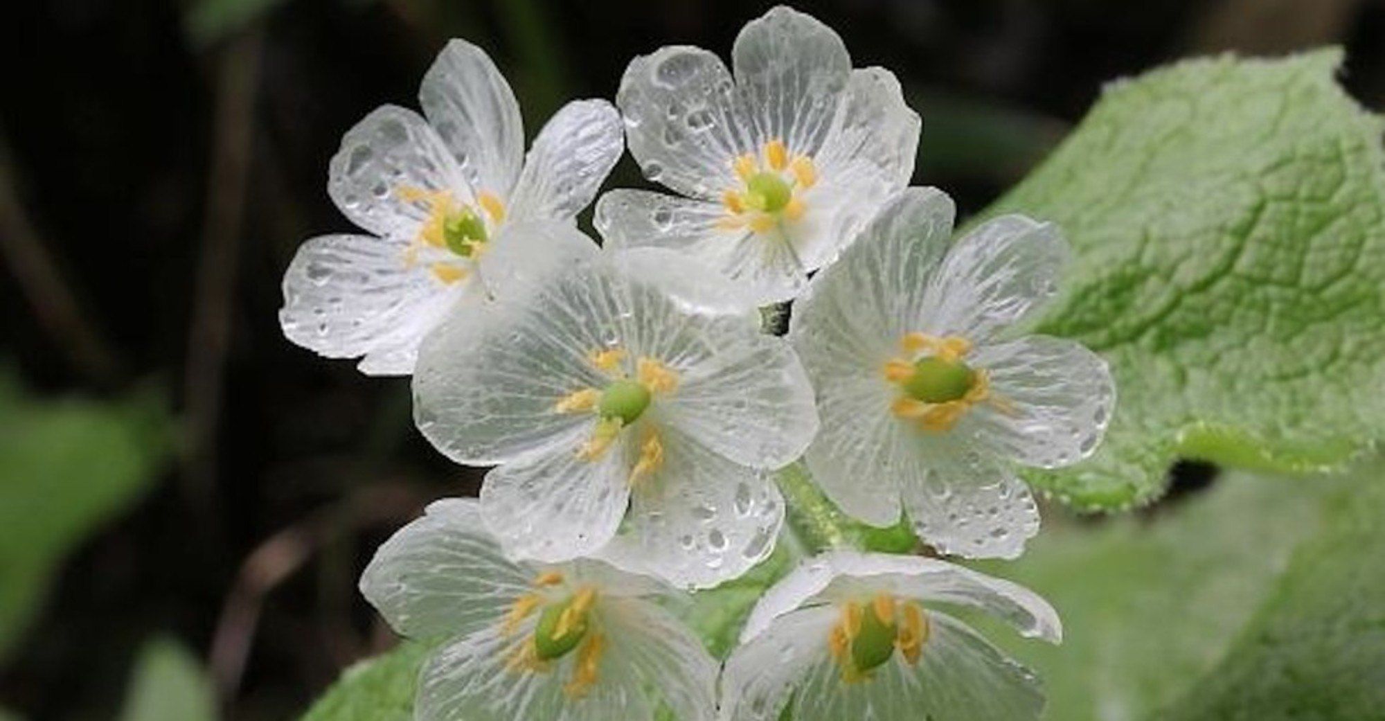 Удивительный цветок, который становится прозрачным во время дождя. Его можно найти лишь в трёх частях земного шара: на влажных лесистых склонах в холодных регионах Японии и Китая, а также в Аппалачи, США. Научное название этого незаурядного растения — #Diphylleia_grayi, или двулистник Грея.