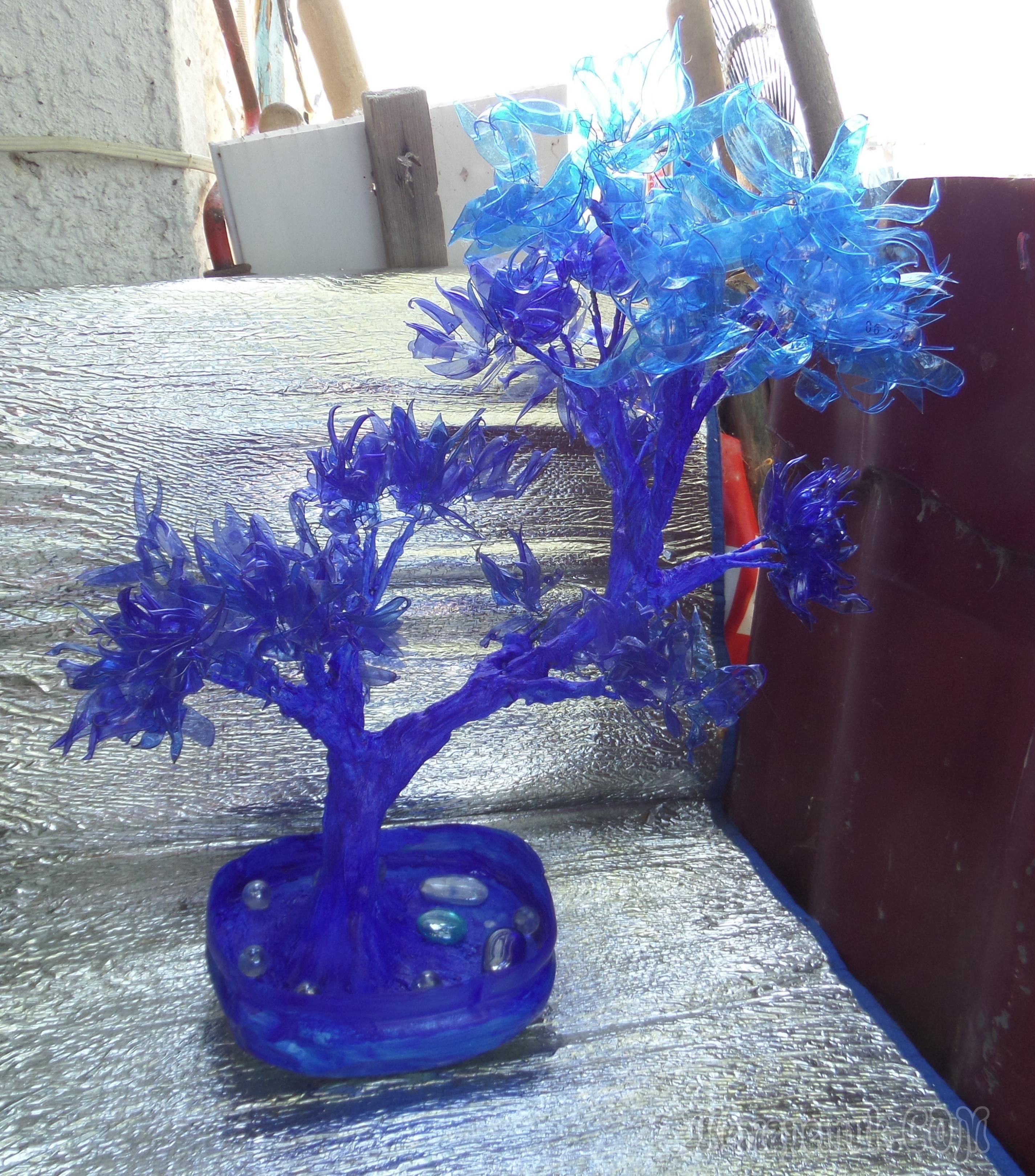 Деревце из синих пластиковых бутылок по МК riabinairina