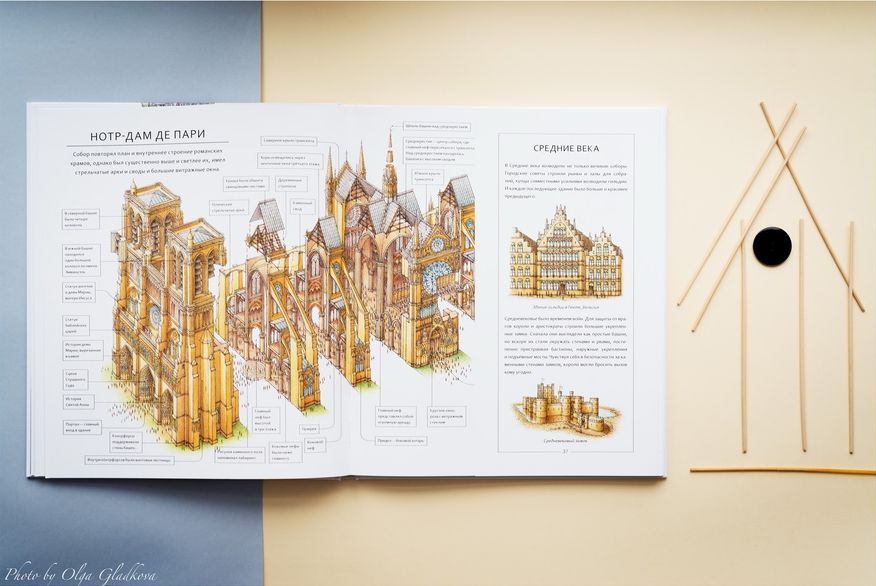 Парфенон, Тадж-Махал, центр Помпиду и Собор Парижской Богоматери — эти и другие здания вы сможете рассмотреть вместе с ребенком, а также прочитать множество любопытных фактов об их строительстве.