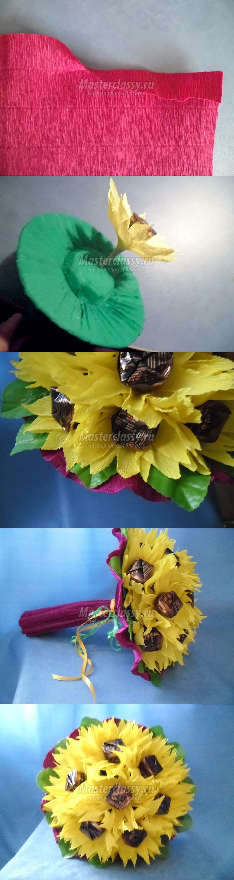 Букет из конфет "Подсолнухи". Мастер-класс с пошаговыми фото