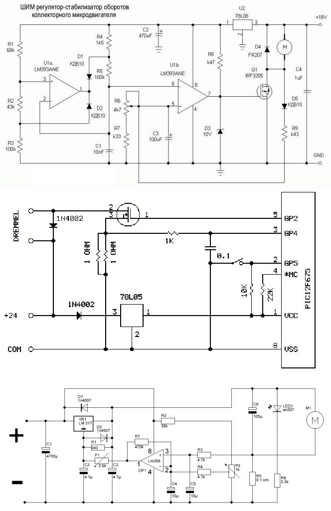 РадиоКот :: Ковырялочка для п/плат. На просторах интернета полно разных схем, простых и не очень простых для управления моторами сверлилок для п/плат. Рассмотрим некоторые наиболее распространённые из них:
