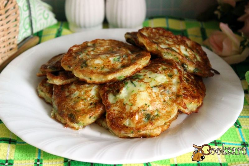 Кабачковые оладьи с мягким творогом и зеленью фото рецепт приготовления