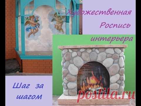 Художественная роспись интерьера поэтапно. Ангелочки и камин. - YouTube