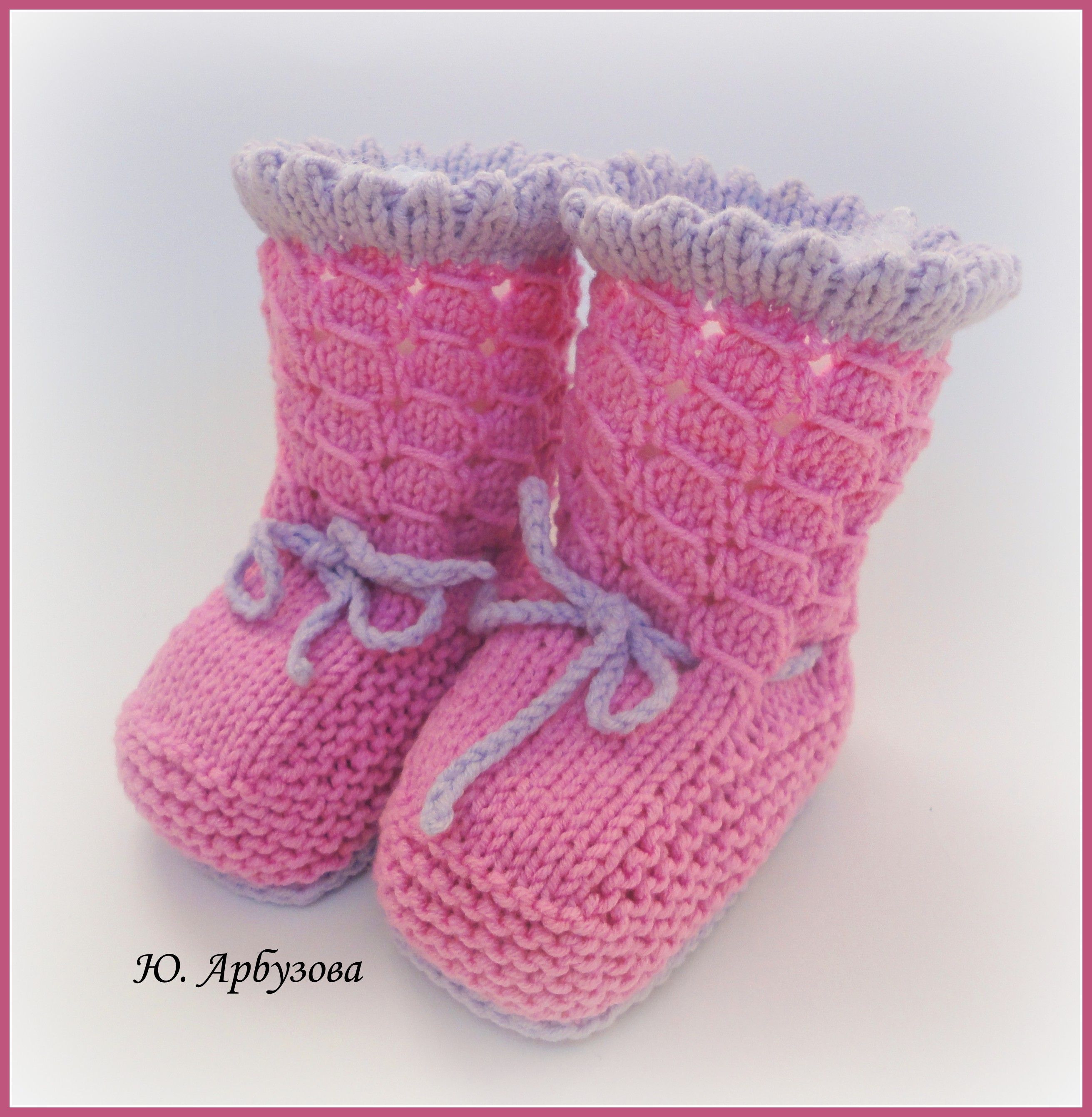Пинетки-сапожки связанные спицами для малыша. | Вязаный Мир. Knit World.