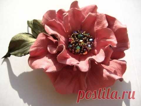 МАСТЕР-КЛАСС: ЦВЕТЫ ИЗ КОЖИ. Брошь заколка ROSE MAGIC. - YouTube