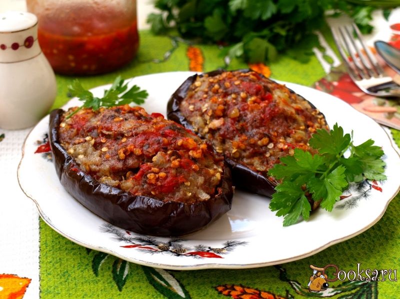 Баклажаны фаршированные мясным фаршем фото рецепт приготовления