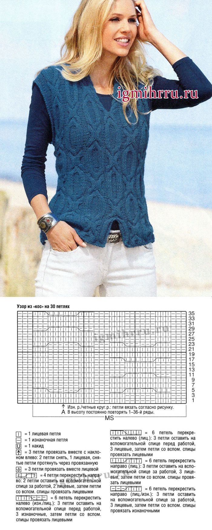вязание спицами жилета