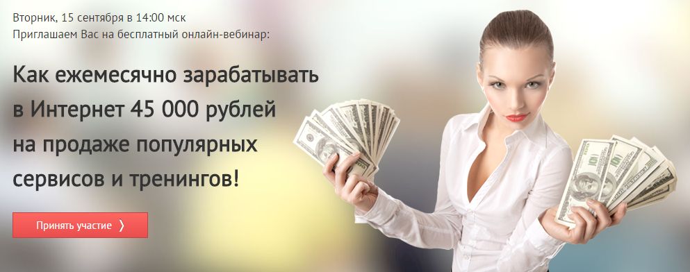 Вторник, 15 сентября в 14:00 мск Приглашаем Вас на бесплатный онлайн-вебинар:Вы хотите иметь достаток, который позволит жить так, как Вам хочется и НЕ ХОТИТЕ прожить всю жизнь, считая копейки.Возможно, у Вас уже есть свой бизнес, но Вы не знаете, как погасить кредиты Может быть, Вы врач или учитель, и зарплаты хватает "от получки до получки"?