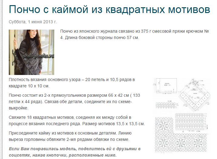 Пончо с каймой из квадратных мотивов