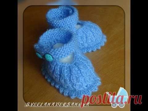 Пинетки-ботиночки с застежкой.Knitting baby booties