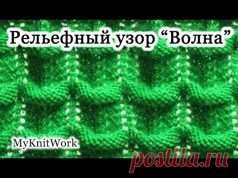 Вязание спицами. Рельефный узор "Волна".