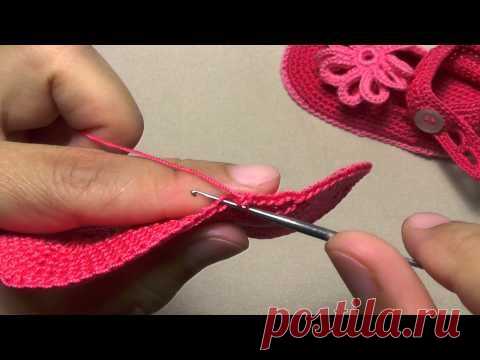 Пинетки сандалики крючком - часть 1- урок вязания . Вязание подошвы пинеток.
