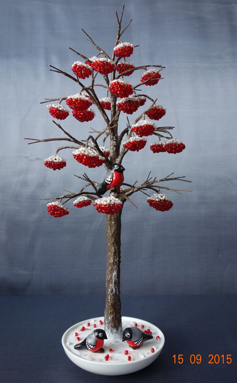 Рябина со снегирями | biser.info - всё о бисере и бисерном творчестве