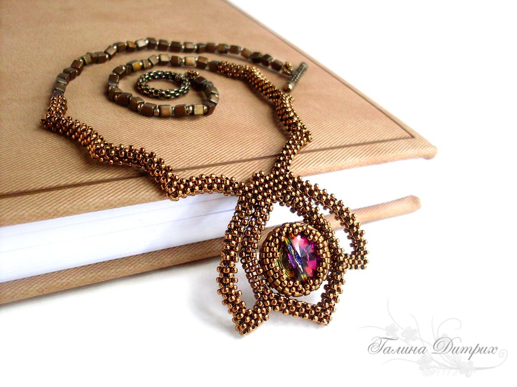 МК Квадратный жгут и прямой угол. Колье «Глаз дракона». | biser.info - всё о бисере и бисерном творчестве
