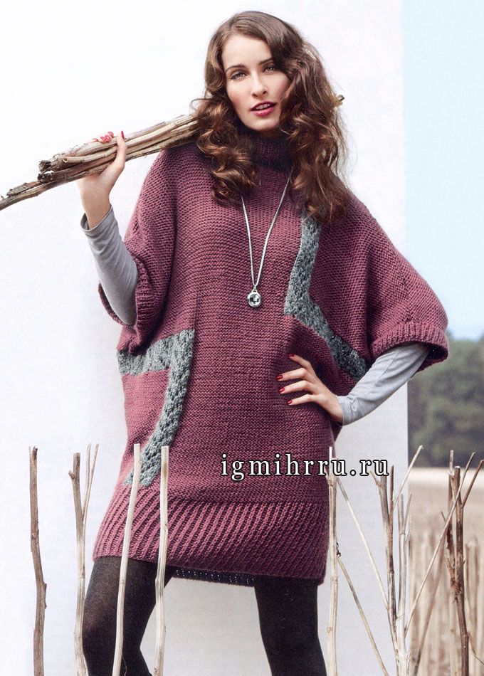 Уютное, практичное и теплое платье-кокон, дополненное сумкой в тон, от Verena. Спицы