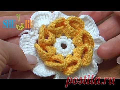 ▶ Folded Petal Crochet Flower Tutorial 22 - YouTube