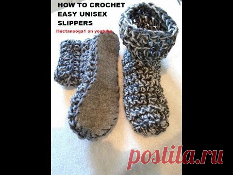 CROCHET: EASY Unisex CROCHET SLIPPERS, Christmas Gift Idea, felt soles, non slip soles VIDEO # 1095