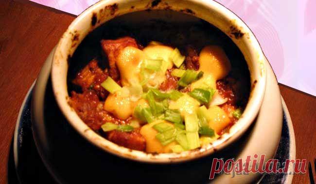 Гуляш, тушенный в горшочках.