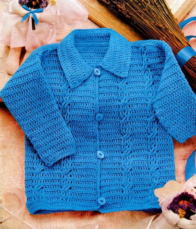 Детская синяя кофта - Вязание малышам крючком