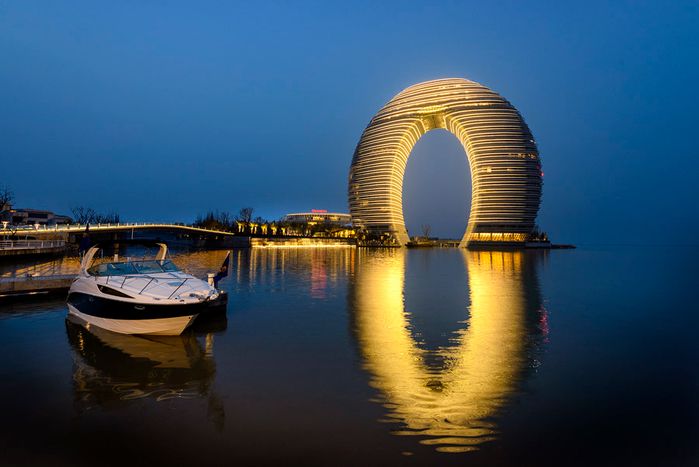 Отель Sheraton Huzhou Hot Spring Resort расположился в городе Хучжоу и напоминает собой огромное колесо или подкову. | Уникальная архитектура современного Китая