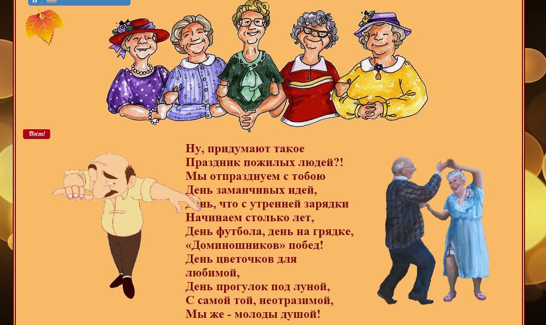 Праздник пожилых людей. Голова полна идей, Как бы лучше всех поздравить, Чтобы было веселей!