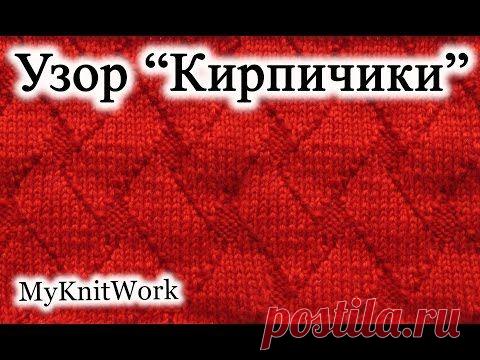 Вязание спицами. Узор "Кирпичики" из лицевых и изнаночных петель. - YouTube