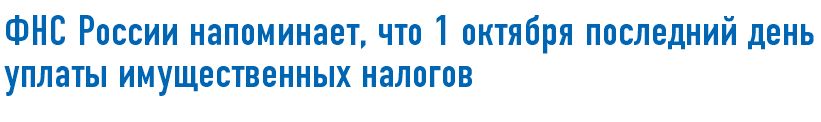 ФНС России напоминает, что 1 октября последний день уплаты имущественных налогов | ФНС | 40 Калужская область