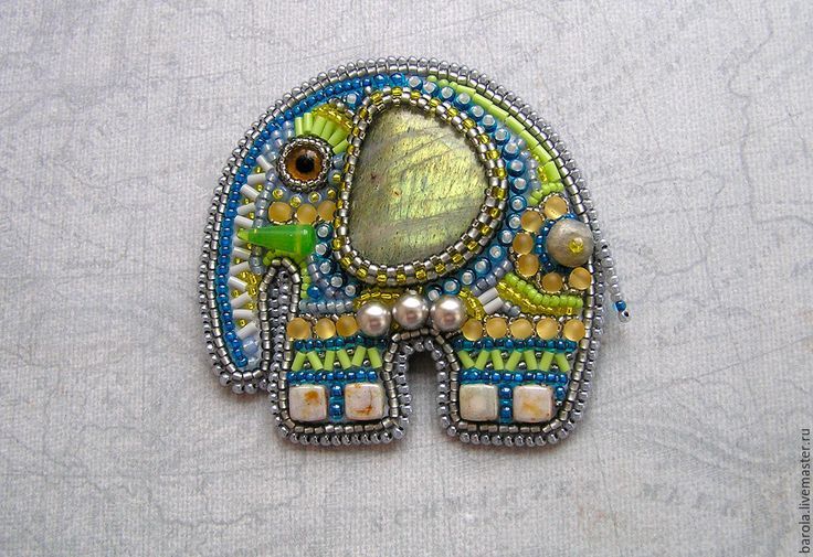 (31) Купить Брошь "Слоник-романтик" - разноцветный, серый, зелёный, синий, лабрадорит, лабрадор, брошь, слон | Бисерные броши и кулоны