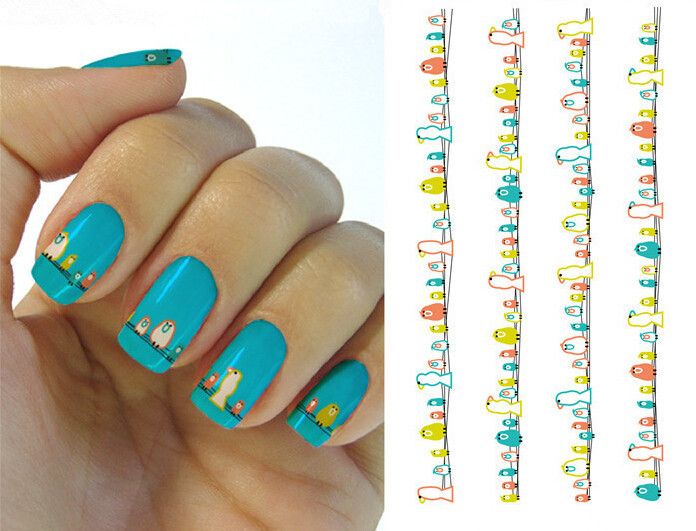 Переброска-воды-ногтей-наклейки-на-полный-обертывания-многоцветный-птицы-провода-дизайн-DIY-французский-маникюр-фольга-штамп.jpg (696×531)
