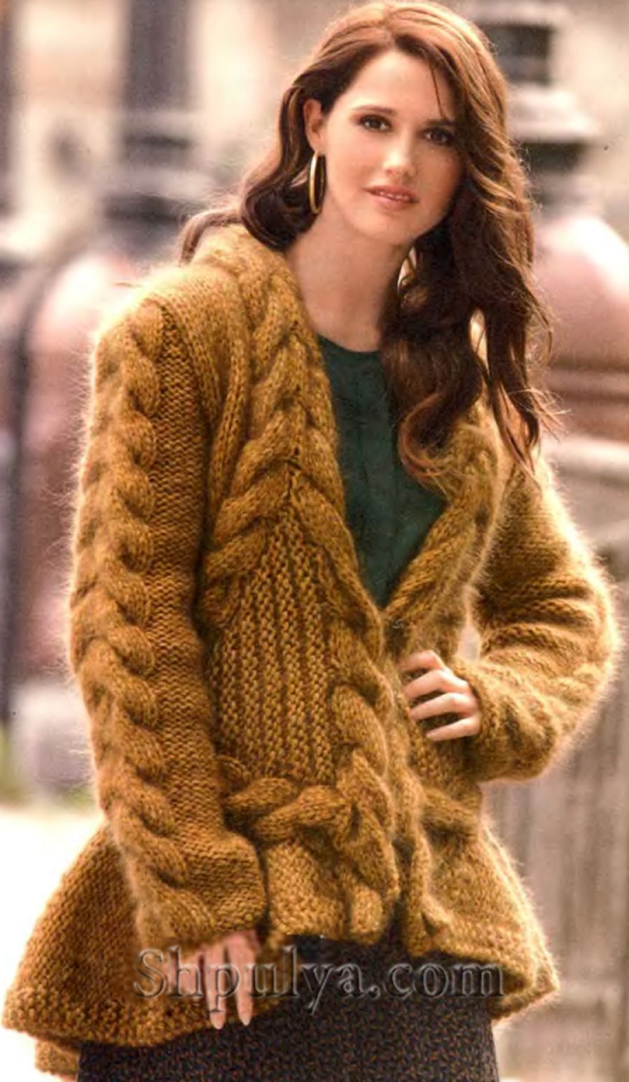 www.SHPULYA.com - Вязаный кардиган с узором из кос спицами