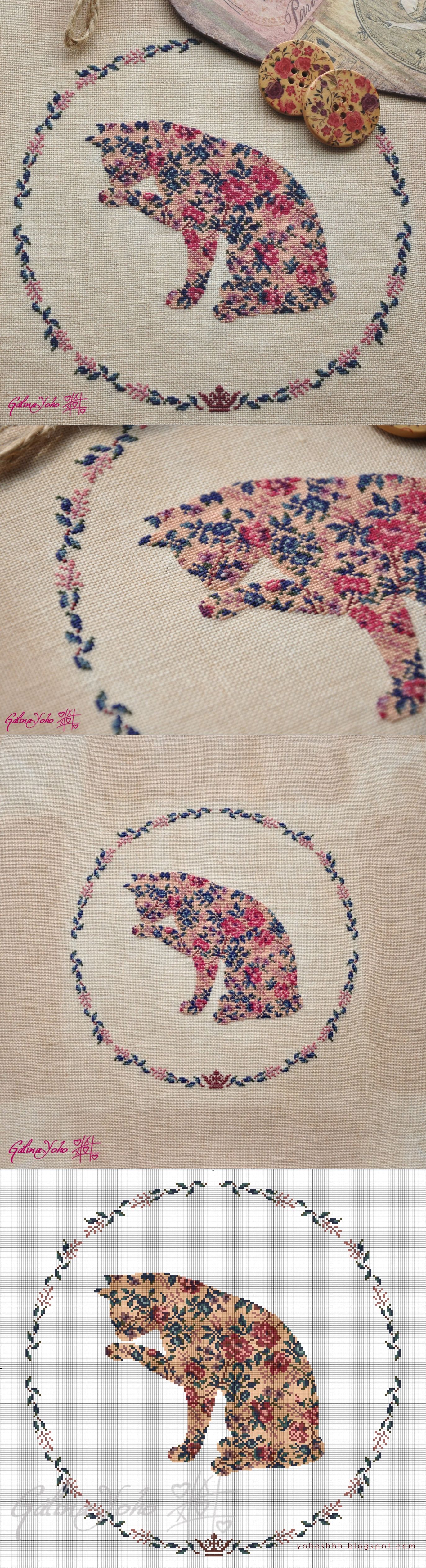 Крестики без ноликов.: Кошка и розы / Cat and roses.