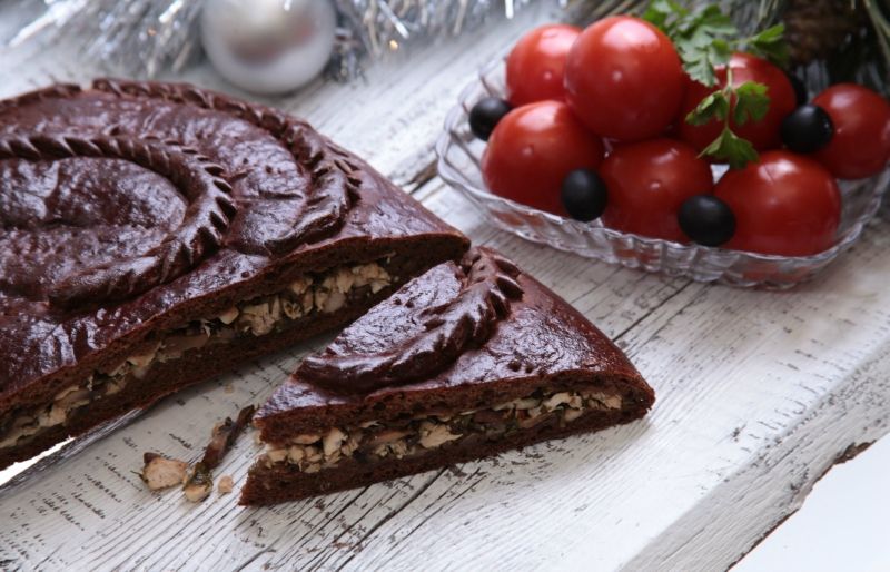 Foodclub — кулинарные рецепты с пошаговыми фотографиями - Ржаной новогодний пирог с грибами и курицей.
