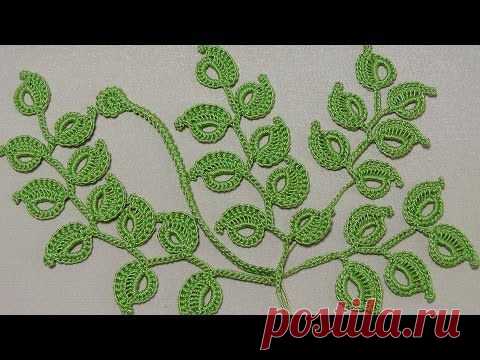 Урок вязания крючком. КАК ВЯЗАТЬ ВЕТОЧКУ ЛИСТИКОВ.Ирландское кружево. Irish lace. - YouTube