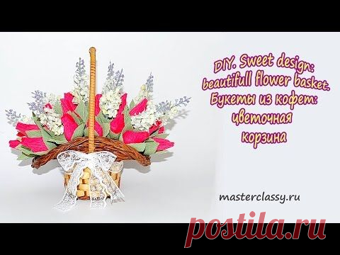 DIY. Sweet design: beautifull flower basket. Букеты из кофет: корзина цветов - YouTube