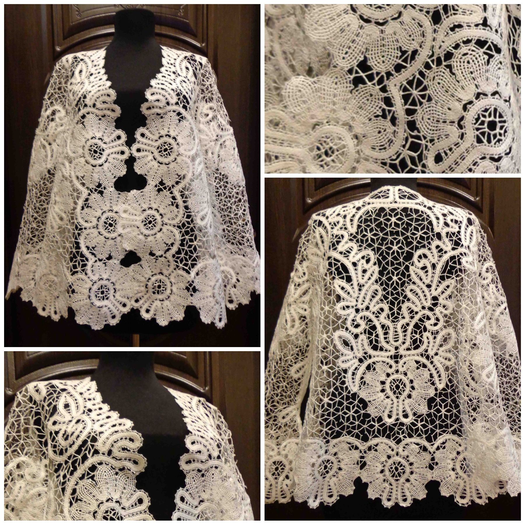 Жакет"Надежда"кружевной сплетен на коклюшках в технике "Елецкое кружево" . Нитка хлопок белого цвета