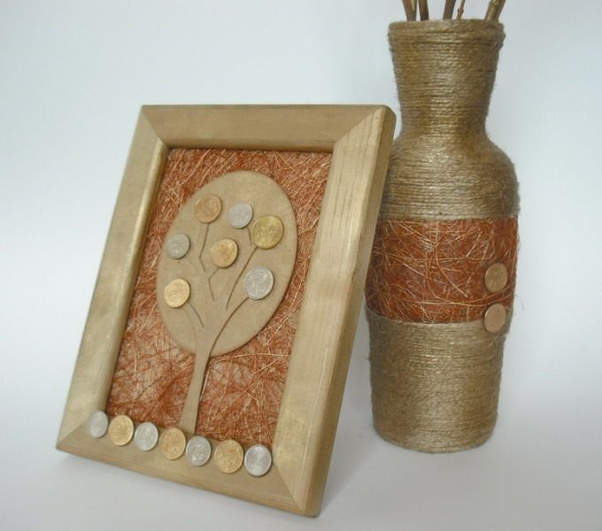 Декорирование стеклянных бутылок шпагатом — Рукоделие