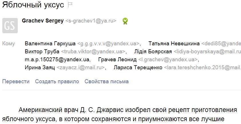 Письмо «Яблочный уксус» — Grachev Sergey — Яндекс.Почта