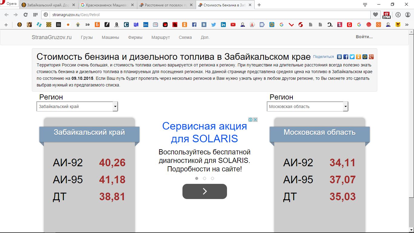Цены на бензин в Забайкальском крае в сравнении с ценами в Московской области - 17 Октября 2015 - Russia-Asia-Siberia