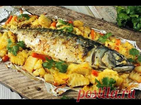 Рецепт скумбрии запеченной в духовке: скумбрия запеченная с овощами - YouTube