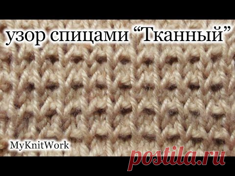 Вязание спицами. Узор "Тканный". Уроки для начинающих.