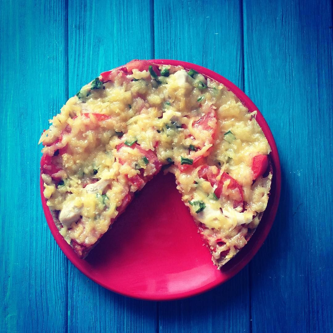 КИЕВ🇺🇦 ДИЕТА ДЮКАНА в Instagram: «Пп/дд пицца на обед🍕😋 Рецепт основы: 🍕2 ст л овсяных отрубей 🍕1 ст л пшеничных отрубей 🍕1 ст л кукурузного крахмала 🍕1 яйцо 🍕5 г разрыхлителя 🍕молоко до 1,5% (наливаем на глаз, чтоб довести тесто до густой консистенции) Все ингредиенты смешать до однородности и вылить на смазанную тремя каплями сковородку. Начинку можно взять любую. Я смазала основу томатной пастой без сахара, выложила поджаренную курогрудку, помидоры, болгарской перец и зеленый лук.