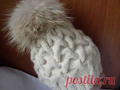 Вязание шапки спицами узором "коса с тенью"