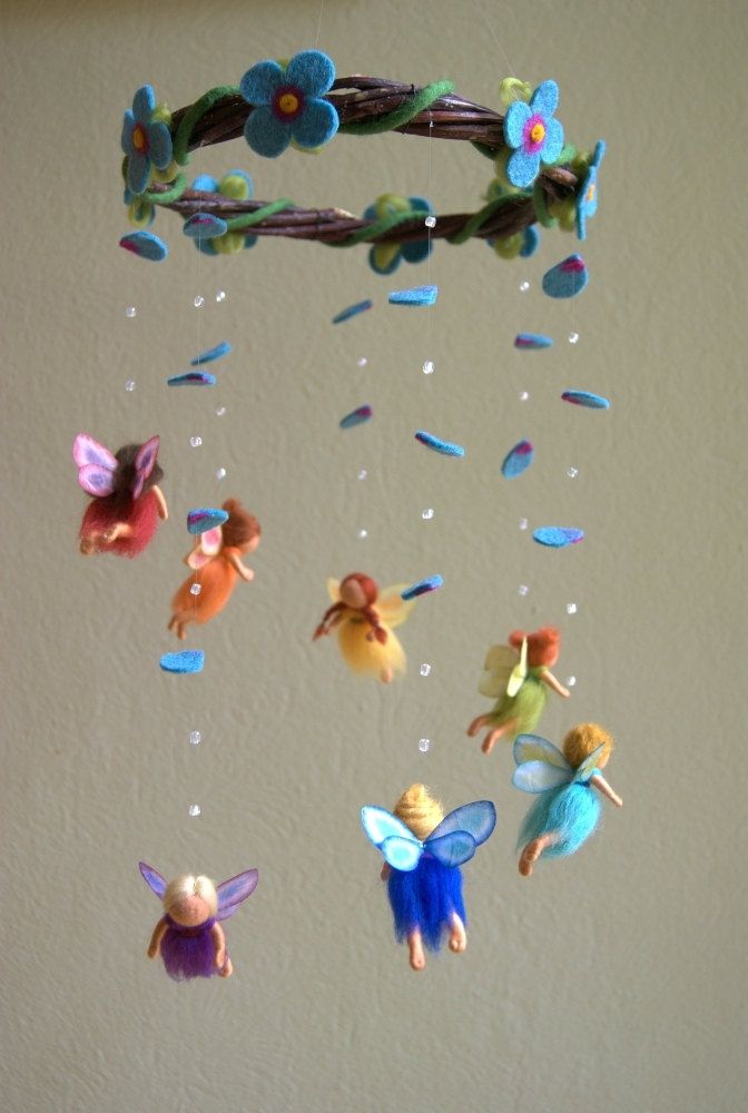 Rainbow fairies mobile - felted, waldorf inspired, wool, by Naturechild