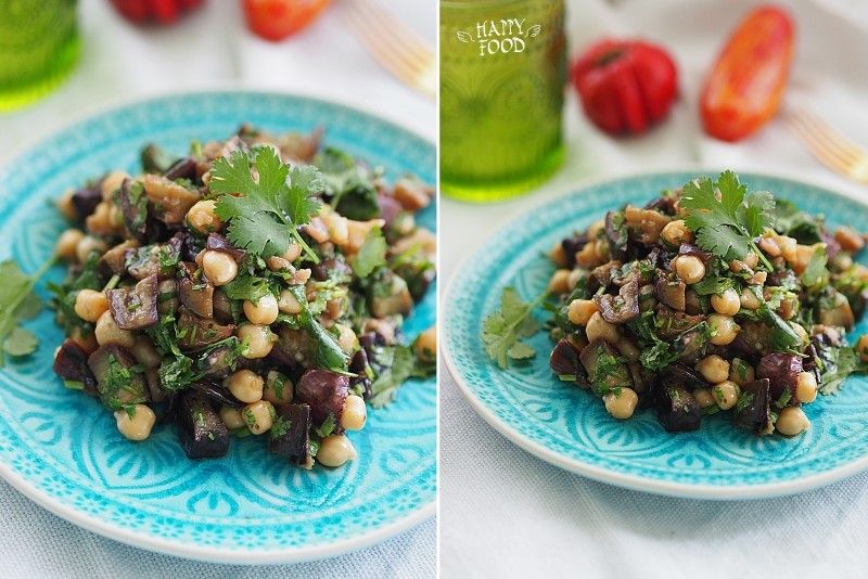 Пикантный салат с баклажанами и нутом с заправкой "чермула" - HAPPYFOOD