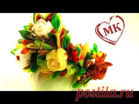Осенний ободок канзаши мастер класс. Цветы из органзы своими руками. - YouTube