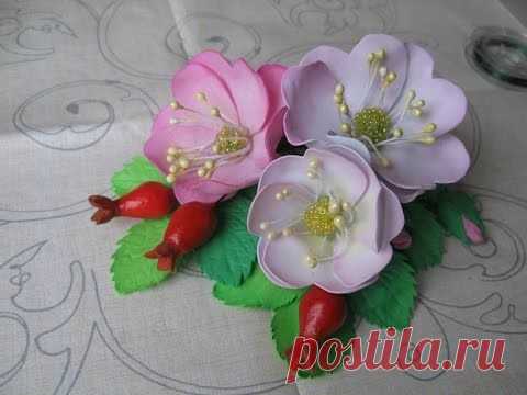 Цветы из фоамирана. Шиповник из фоамирана, серцевина из бисера, плоды из полимерной глины. - YouTube