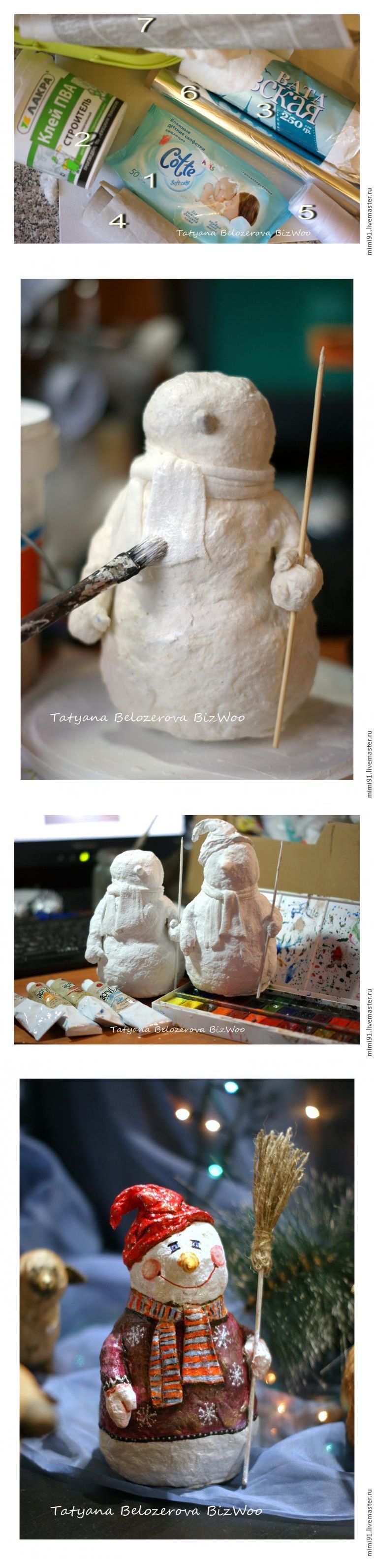 Мастер-класс: снеговик в технике ватного папье-маше - Ярмарка Мастеров - ручная работа, handmade