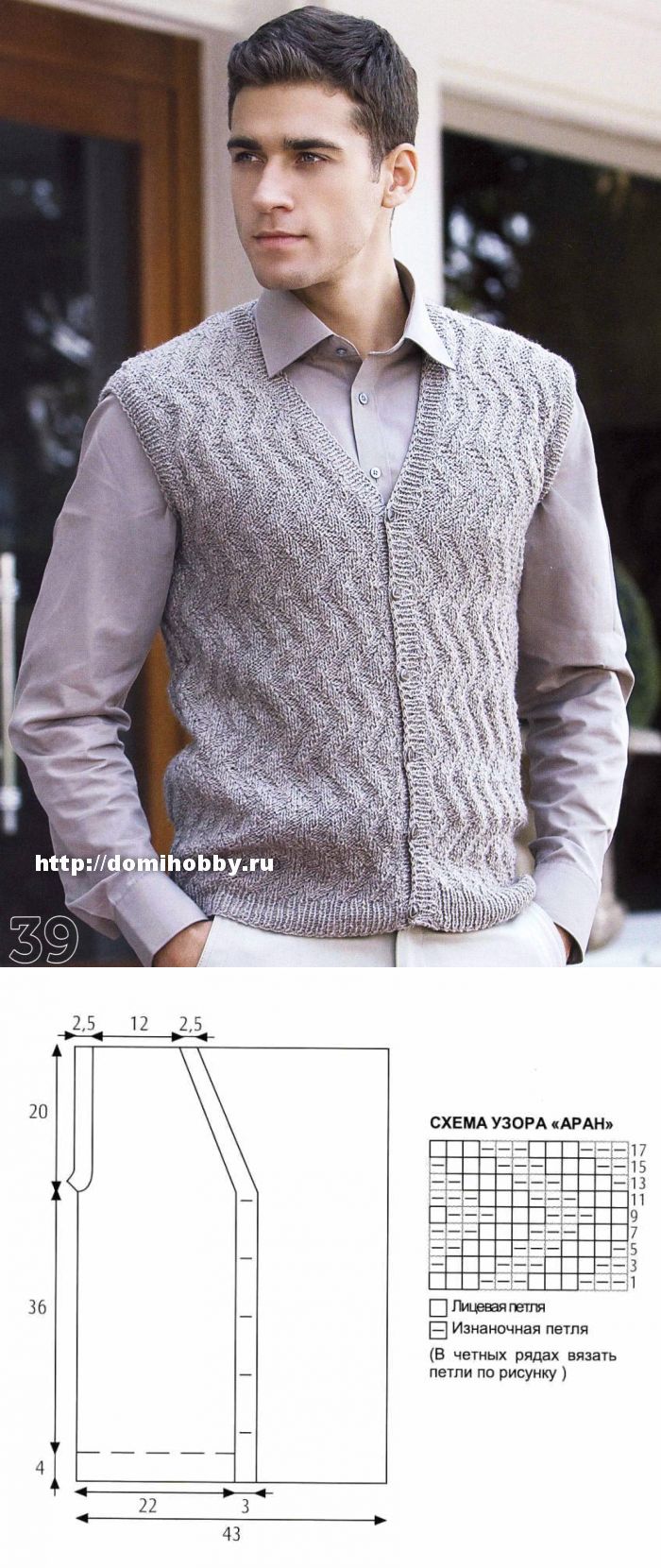 Мужской жилет спицами.